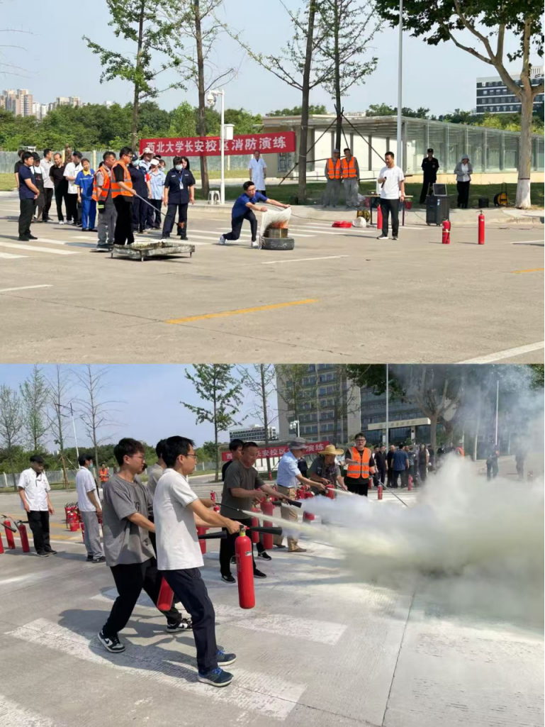 学校于6月13日在长安校区举办消防演练活动。学校消防科重点演示了不同种类消防器材的操作方法和灭火技巧,并就不同类型火灾的扑救方法进行了现场指导。学校保卫处就火灾预防,火灾发生时自救、逃生、扑救初期火灾等技能进行了讲解。我院实验中心老师积极参加此次活动。