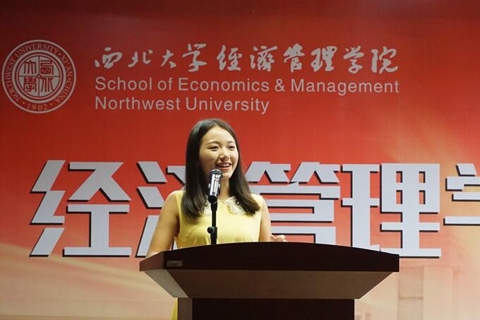 2014级金融工程班董妍同学代表在校生发言,和新生们分享自己的自己大学三年中的学习和生活经验。在谈到如何利用大学四年时间的时候,董妍同学从专业知识学习和提高为人处事能力两方面着眼,鼓励新生刻苦学习,认真钻研,锤炼品格,珍惜大学时光。