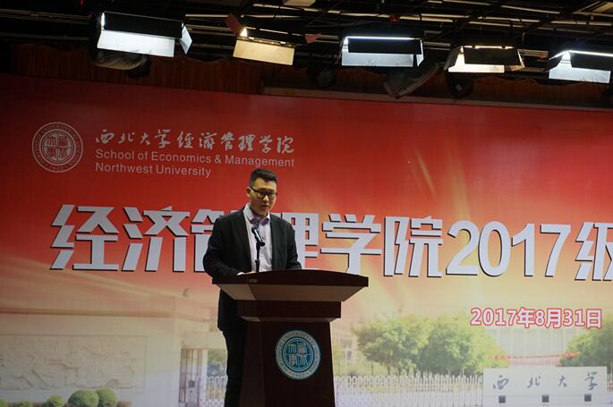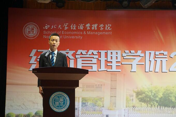 典礼开始之初,2017级基地班郝嘉鹏和2017级金融专业研究生龙汉分别代表新生发言。郝嘉鹏满怀热情的言辞中,充满了对大学生活的向往和美好理想的憧憬,热情的语言感染着在座的老师和同学,展现了2017级本科生的独特风貌和青春活力,体现了新时代青年的历史使命感和责任感。龙汉同学在发言中,首先谈到了自己本科四年在学院学习和生活的收获,更着重阐述了自己对于“研究生”这一新身份的认识和理解,号召全体研究生相互学习,共同成长,在追寻理想的道路上,迈出更坚实的一步。