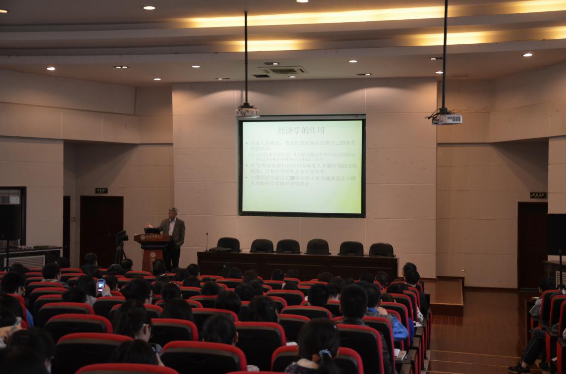 在报告中,张维迎教授认为经济学在理论上难以很好的解释现实,在政策上又难以给出科学的对策建议。要改变这种状况,必须要从四方面对经济学进行转型,一是实现从资源配置理论向人类合作理论进行转型,资源配置理论是静态的,而合作理论是动态的,市场经济正是人类最好的合作制度;二是实现从功利主义向权利主义进行转型,在解析了功利主义与权利主义的涵义后,张维迎教授以“外部性”和“正义”为例,阐释了这一转型;三是实现从物质主义快乐观向整体幸福观进行转型,重点阐述了幸福的时间维度和空间维度以及如何转型;四是实现从利益向理念进行转型,张维迎教授认为传统经济学只关注利益而忽视理念,进一步以大卫·休谟、凯恩斯、米塞斯等的观点引出理念的重要性,最后重点分析了经济学的作用和建立思想市场的重要性。张维迎教授深厚的理论功底、独特深邃的经济哲学分析视角为大家带来了一场思想的盛宴。报告后,张维迎教授回答了老师和学生的提问,与大家进行了深入交流。