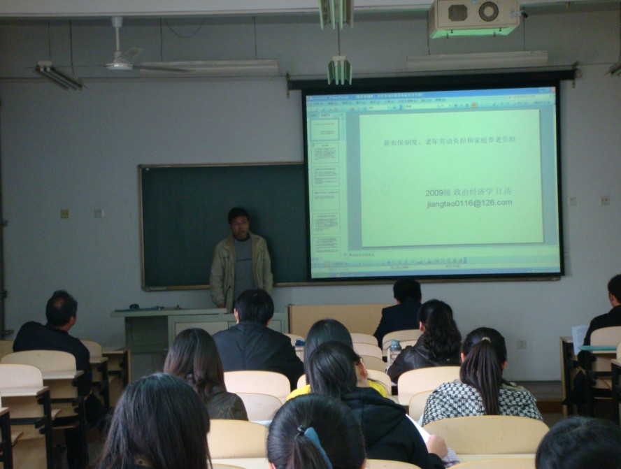 在论坛的点评阶段,2009级西方经济学马强文博士进行了精彩的点评,在座的部分博、硕士生和基地班同学踊跃提问,就新农保制度和农村养老保险等问题发表自己的看法。