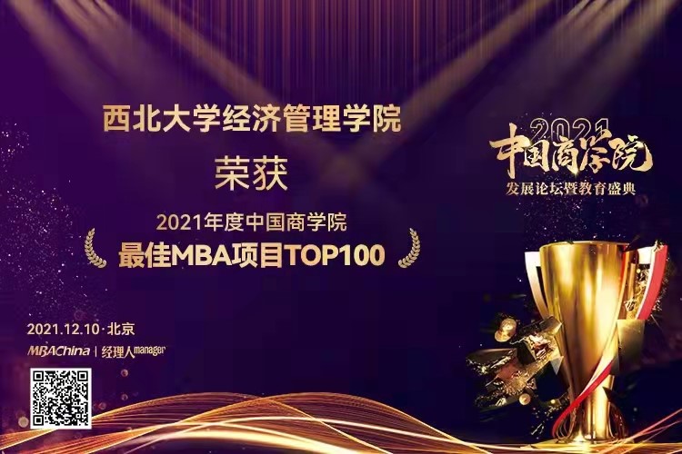 我院MBA荣获2021年度中国商学院最佳MBA项目TOP100