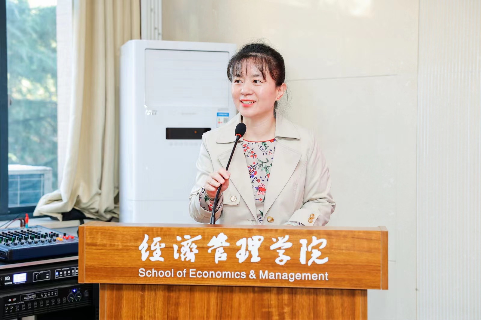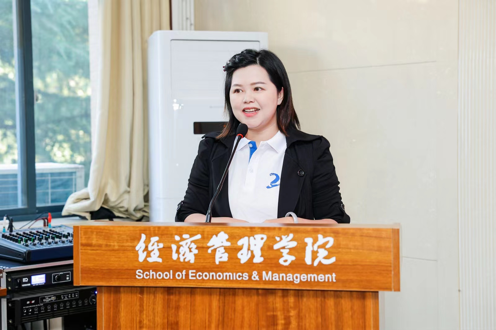 马莉莉院长对校友们返校回家表示热烈的欢迎。她介绍了学院的发展现状和建设成效。她在讲话中提到,以全国最美教师何燕为代表的03级校友以身作则,立足岗位、建功立业,在各行各业取得骄人成绩;校友积极回馈学校学院,先后设立了“攀云”“涛澜”等助学金,助力经管学子奋发学习、勇敢追梦;韩博、魏川、王冠清、张科赞、王哲辉等校友帮助对接多家单位,推进校政、校企合作,助力学院产学研融合、学生发展。最后,她介绍了学院校友工作格局,并期待校友与学院相互赋能、共同发展。