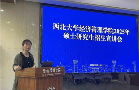 学院院长马莉莉教授介绍了学院基本概况、学科特色,并做2025年硕士研究生招生动员讲话。马莉莉强调时代飞速发展,对人才的要求不断提升,希望同学们把握住升学机会进一步提高自身,学院本硕博贯通的人才培养体系为大家提供了坚实的平台。并对学院今年新增的数字经济专硕学位点进行了介绍,鼓励同学们积极报考。