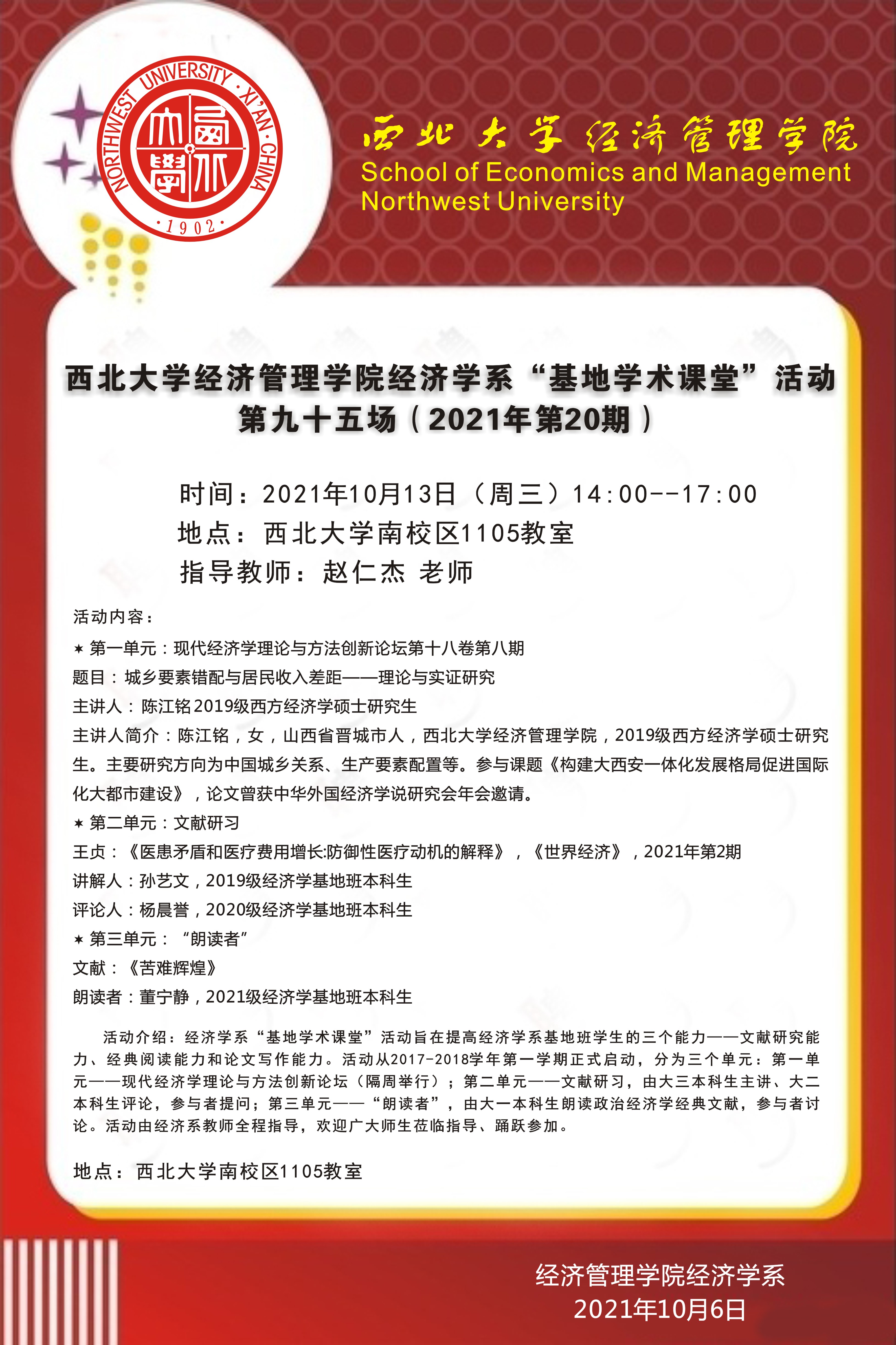 上一条:西北大学名家讲坛----疫情冲击、结构分化与均衡发展